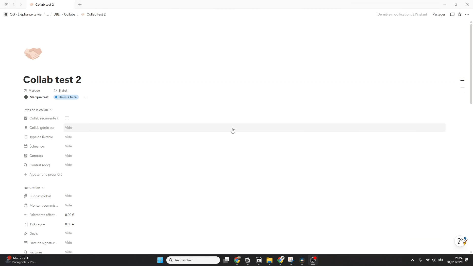 Quand Daphné ajoute une nouvelle collaboration, elle clique sur un bouton “Ajouter les tâches à la to-do”. Et hop : 7 tâches se créent automatiquement, reliées à la collab’ en question ✅